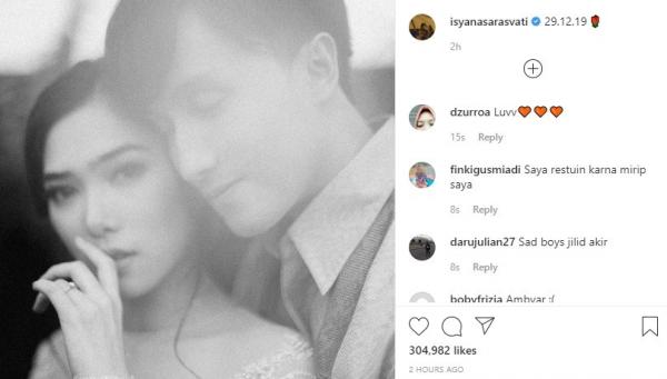 Tak lama dari unggahan yang mengejutkan tersebut, Isyana memposting sebuah foto hitam putih bersama seorang pria yang merupakan kekasihnya selama ini. Isyana tampak cantik mengenakan kebaya dan memperlihatkan cincin di jari manisnya.