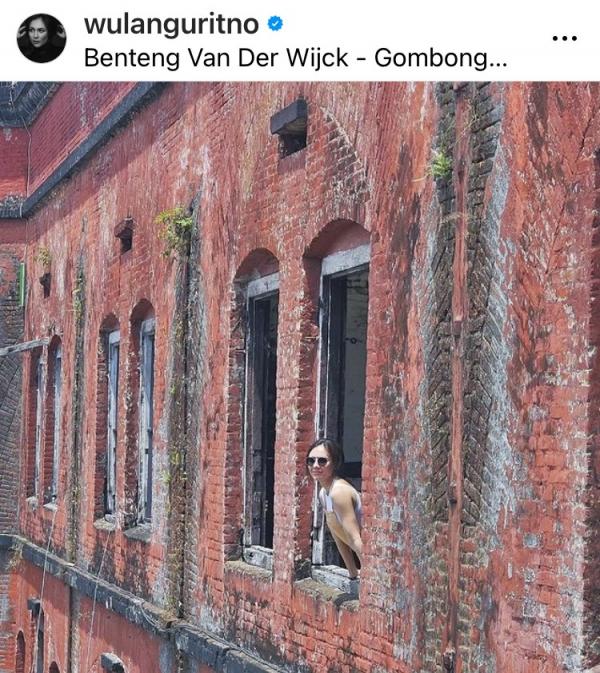Selain itu, Wulan juga mengunggah foto saat menikmati keindahan Benteng Van der Wijck. Dia juga mengunggah foto snack lanting bambu khas Kebumen