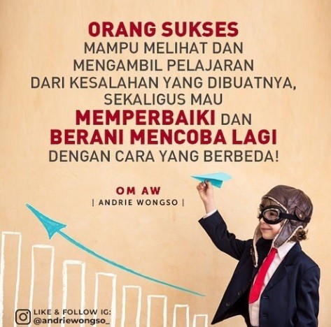 JAKARTA, iNews.id – Kata-kata bijak dari motivator seperti Andrie Wongso, bisa menyulut semangat untuk terus berpretasi. Motivasi ini bisa ditanamkan dalam kehidupan kita setiap hari.