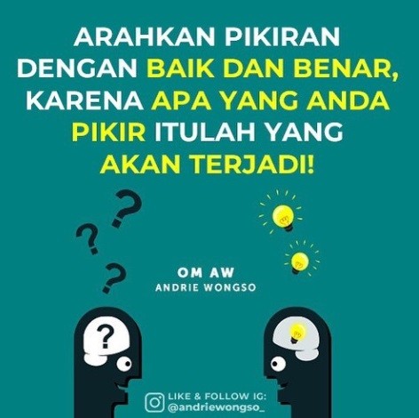 You are what you think! Kalau yang kita tanamkan ke dalam pikiran kita adalah hal-hal negatif, maka dampaknya akan destruktif (merusak). Sebaliknya kalau pikiran kita baik dan positif, tentu dampaknya akan konstruktif (membangun).