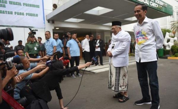 Kemeja dengan tulisan tersebut telah tampak sejak Jokowi dan KH Ma'ruf Amin mendaftarkan diri sebagai capres-cawapres, Jumat 10 Agustus lalu. Simbol itu kembali muncul saat tes kesehatan bersama pendampingnya, KH Ma'ruf Amin di RSPAD Gatot Soebroto, Minggu (12/8/2018).