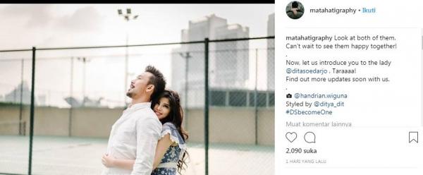 "Lihat keduanya, tak sabar melihat mereka bahagia bersama. Sekarang izinkan kami memperkenalkan wanita tersebut, @ditasoedarjo. Taraaa!" tulis akun Instagram @matahatigraphy, Minggu 29 Juli 2018.
