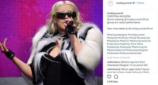 "CHRISTINA AGUILERA @xtina wearing @rinaldyyunardiofficial gloves at a recent performance," tulis Rinaldy Yunardi, dikutip dari keterangan foto yang diunggah di akun Instagram pribadinya, Rabu (13/6/2018).