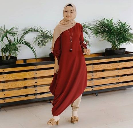 Namun jika kamu lebih suka berpenampilan feminin, Nissa juga kerap tampil seperti itu kok. Misalnya gaya satu ini, ketika dia memadukan tunik warna oranye kemerahan yang dipadukan lagi dengan celana, sepatu dan hijab warna khaki. Untuk sepatu, kamu bisa memilih high heels, wedges, maupun sepatu flat kesayanganmu.