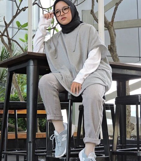Jika kamu penggemar warna abu-abu, gaya monokrom Nissa Sabyan ini bisa menjadi inspirasi kamu. Gaya simpel Nissa kali ini memadukan antara atasan longgar, celana, dan sepatu kets warna abu-abu yang senada. Agar tampak lebih bold, Nissa memberi 'fashion statement' lewat kerudung hitamnya yang dibikin simpel.