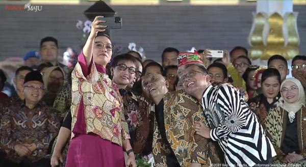 Keseruan Sri Mulyani Asyik Selfie di Catwalk Istana Berbatik