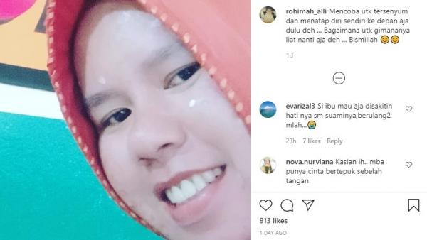 Melalui media sosialnya itu, Rohimah mengunggah foto selfie dirinya tengah tersenyum. Dalam keterangan fotonya, Rohimah juga tampak pasrah dengan keadaan.