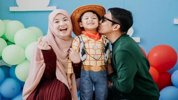 Dalam foto itu, Caca juga terlihat satu frame dengan Desta dan Gege. Perempuan 30 tahun itu tersenyum lebar ke arah kamera. Sementara Desta memilih mencium pipi sang anak yang berada ditengah-tengah mereka.