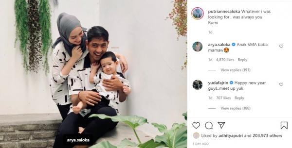 JAKARTA, iNews.id – Mengawali tahun 2021, Putri Anne mengunggah foto kebersamaan dengan Arya Saloka dan sang buah hati, Ibrahim Jalal Ad Din Rumi. Melihat kekompakan mereka, netizen pun sangat bahagia.