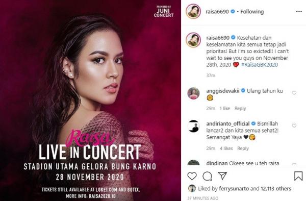 “Kesehatan dan keselamatan kita semua tetap jadi prioritas! But I’m so exicted!! I can’t wait to see you guys on November 28th, 2020 ???? #RaisaGBK2020,” tulis Raisa di media social Instagram, dikutip iNews.id pada Jumat (3/4/2020).