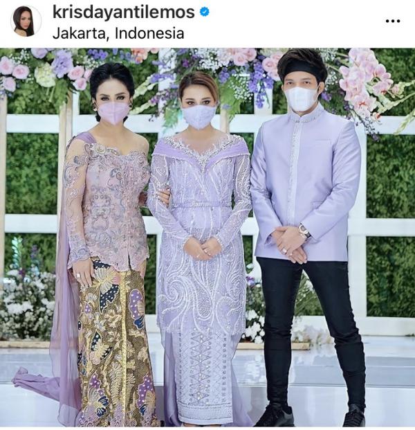 JAKARTA, iNews.id - Krisdayanti turut menghadiri acara lamaran putri sulungnya, Aurel Hermansyah dengan Atta Halilintar, Sabtu, 13 Maret 2021. Istri Raul Lemos ini hadir bersama sang kakak, Yuni Shara, mengenakan busana kebaya bernuansa warna ungu.