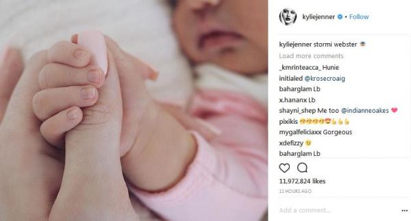 Dalam postingan tersebut, Kylie sekaligus mengumumkan kelahiran bayi perempuan pertamanya pada 1 Februari 2018. Selain mengunggah pengumuman kelahiran baby Stormi, pebisnis muda ini mengunggah video proses kehamilannya "To Our Daughter" di Youtube pada 4 Februari lalu.