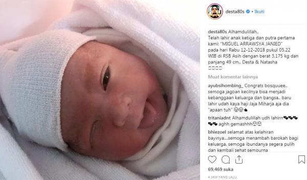 JAKARTA, iNews.id - Pasangan Natasha Rizki dan Desta akhirnya dikaruniai anak laki-laki. KAbar bahagia ini dibagikan di akun Instagramnya.