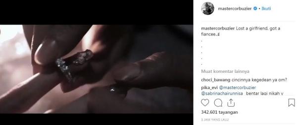 "Lost a girlfriend, got a fiancee," tulisnya, seperti dikutip dalam akun Instagram miliknya, Selasa (20/11/2018).