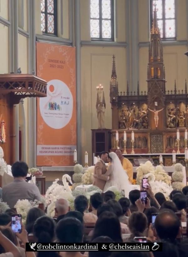 Dalam video itu, tampak Rob Clinton mendekatkan diri kepada Chelsea Islan. Sambil terus menggenggam kedua tangan Chelsea, Rob kemudian mengecup bibir perempuan yang telah sah menjadi istrinya.