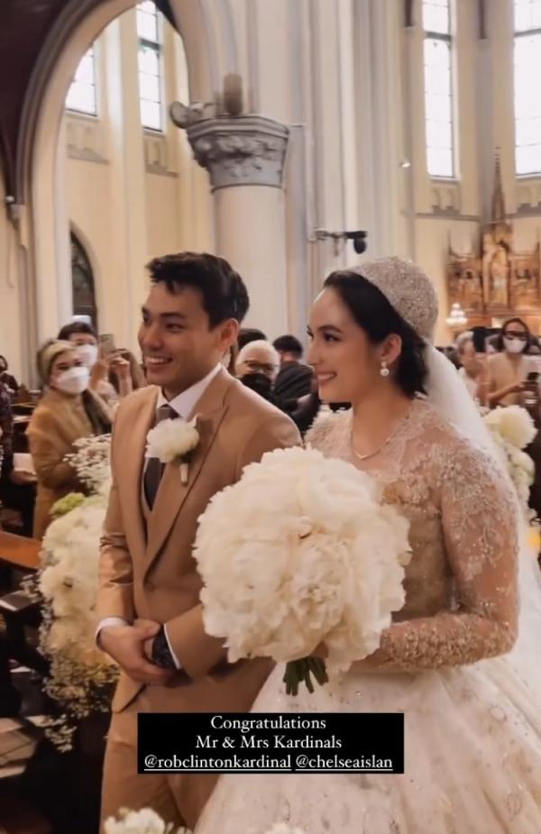 Tak lupa, Chelsea Islan juga membawa sebuah buket bunga putih di tangannya sembari menyapa para tamu yang hadir di gereja. Senyum manis pun tak lepas dari pasangan pengantin baru ini.