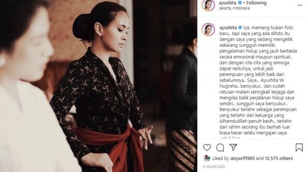 “Alhamdulillah penuh kasih terlahir dari rahim seorang ibu berhati luar biasa besar selalu mengajari saya untuk bisa bersabar, legowo, menghadapi saat-saat sulit di tiap fase kehidupan yang saya lalui,” tulis Ayushita seperti dikutip dari Instagram, Selasa (21/4/2020).