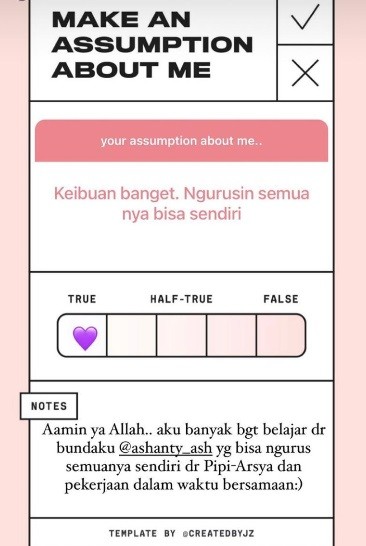 Di postingan itu, Aurel meminta para pengikutnya untuk menulis asumsi mereka tentangnya. Salah satu akun menuliskan bahwa putri sulung Anang Hermansyah dan Krisdayanti ini mempunyai sifat keibuan.