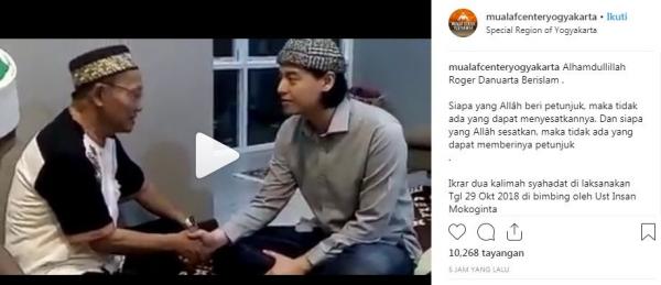 “Apakah benar Roger Danuarta mualaf? Memperjelas posting IG @mualafcenteryogyakarta sebelumnya terkait video seorang pria yang bersyahadat dibimbing oleh ayahanda kita Ust Insan Mokoginta. Maka kami sertakan foto terkait agar dapat memperjelas, apakah benar dalam video tersebut yang mengucapkan Dua Kalimah Syahadat ialah Roger Danuarta," tulisnya yang diunggah empat jam lalu.