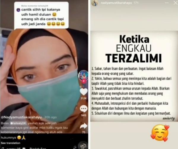 JAKARTA, iNews.id - Nadya Mustika Rahayu kembali menerima komentar nyinyir di tengah kabar keretakan rumah tangga dengan Rizki 2R. Seorang netizen menuding perempuan asal Bandung ini sudah hamil duluan.