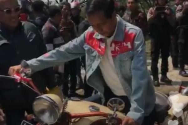 Naik Chopper di Sukabumi, Jokowi Tampil Nyentrik dengan Jaket Jins