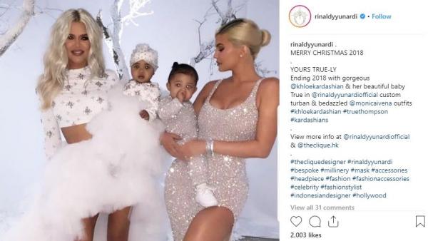 "Ending 2018 with gorgeous @khloekardashian & her beautiful baby True in @rinaldyyunardiofficial custom turban & bedazzled @monicaivena ooutfit," tulis Rinaldy, seperti dikutip dari Instagramnya, Selasa (25/12/2018).