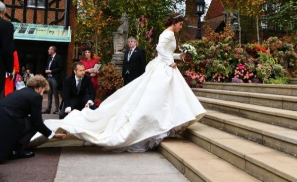Di upacara pernikahannya yang digelar di St. George's Chapel di Windsor Castle, Inggris, Jumat 12 Oktober 2018, dia mengenakan gaun pernikahan yang menampilkan bekas luka operasi di bagian punggungnya saat berusia 12 tahun. Tampak gaun tersebut memiliki potongan yang terbuka di bagian punggungnya, dan itu sangat cantik. Namun, ada alasan tersendiri mengapa Princess Eugenie memilih gaun tersebut.