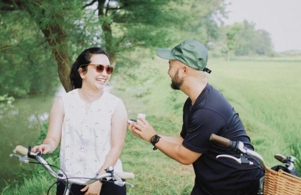 Dia pun mengunggah beberapa foto yang memperlihatkan momen saat sang suami melamar dirinya. Sederhana namun romantis, Narawastu melamar Amanda saat mereka sedang bersepeda di pinggir sawah.