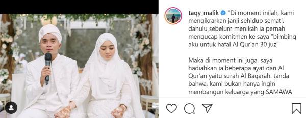 Di pernikahannya yang kedua ini, Taqy Malik memberikan hadiah spesial untuk sang istri. Hadiah spesial itu adalah beberapa ayat dari Alquran, yakni surah Al Baqarah.