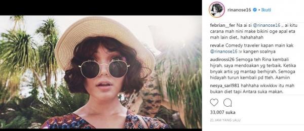 Netizen membanjiri posting-an Instagram Rina pada Rabu 11 Juli 2018. Mereka membandingkan Rina dengan Nikita dan meminta agar wanita 34 tahun itu kembali berhijab.