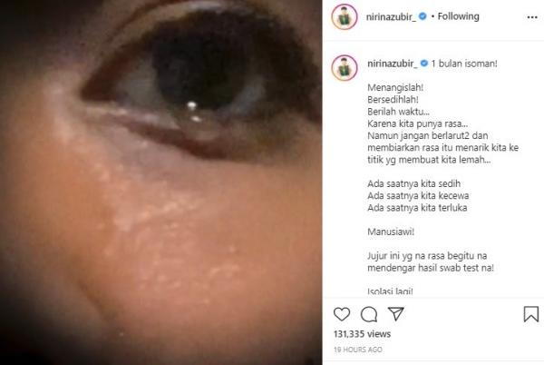 Kesedihan itu ditunjukkan melalui unggahan Instagramnya, yang menampakkan mata berlinang air mata. Istri Ernest Cokelat ini meluapkan perasaannya yang lelah terus menjalani isolasi.