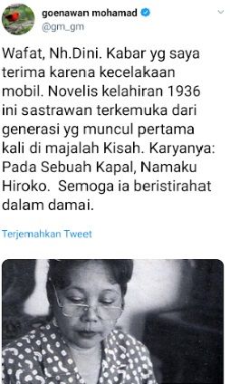 Hal tersebut diketahui dari cuitan sastrawan sekaligus budayawan Goenawan Mohamad.