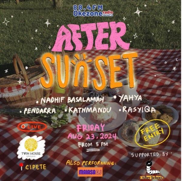 “After Sunset” akan digelar pada Jumat 23 Agustus 2024, dan disiarkan live dari Twin House Coffee & Kitchen di Cipete, mulai pukul 17.00 WIB.