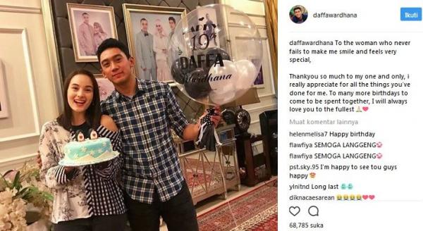 “To the woman who never fails to make me smile and feels very special. Thankyou so much to my one and only, i really appreciate for all the things you’ve done for me. To many more birthdays to come to be spent together, I will always love you to the fullest,” tulis Daffa.