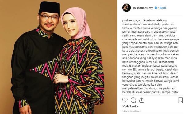 "Maaf baru bisa mengabarkan,selama 3 hari kota Palu lumpuh baik dari aspek telekomunikasi transportasi maupun penerangan," tulis Pasha seperti iNews.id kutip dari akun instagramnya @pashaungu_vm Minggu (30/9/2018).