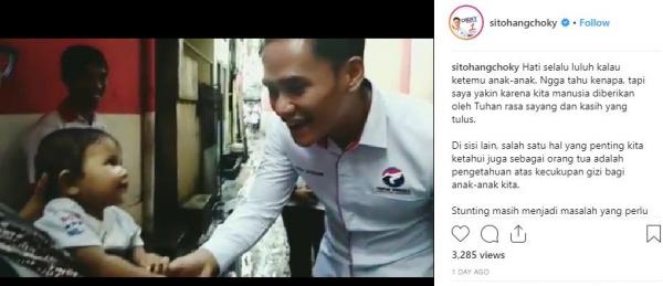 "Hati selalu luluh kalau ketemu anak-anak. Ngga tahu kenapa, tapi saya yakin karena kita manusia diberikan oleh Tuhan rasa sayang dan kasih yang tulus," tulis Choky yang kini menjadi Caleg DPR RI dari Partai Perindo, Dapil Kota Bandung dan Cimahi nomor urut satu, seperti dikutip dari keterangan video di Instagram miliknya, Minggu (7/4/2019).