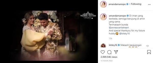 Hal tersebut diketahui dari unggahan video singkat Amanda Manopo di Instagram. Di video itu, tampak dua sejoli itu tengah berdansa mesra. Amanda tampak anggun dengan kebaya Anne Avantie, sementara Billy kelihatan gagah dengan atasan batik yang rapi.