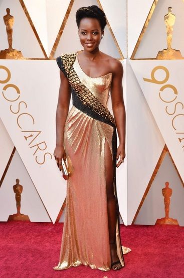 Glamornya Lupita Nyong'o alias Nakia dari Black Phanter ini rupanya mengalahkan penampilan para nominasi lain seperti Saoirse Ronan atau Margot Robbie. Kali ini ia tampil mewah dengan busana keemasa dari Atelier Versace.