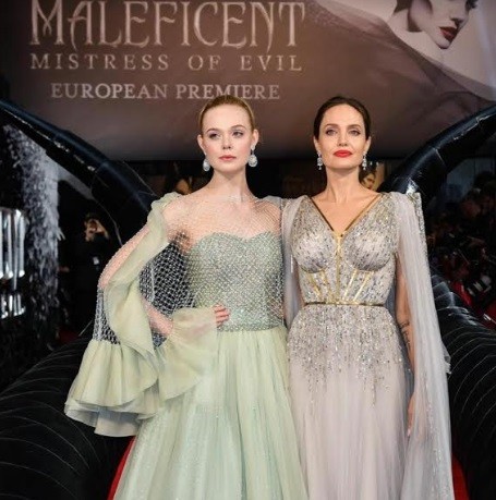 Tampil di samping Angelina Jolie tak membuat pesona Elle Fanning berkurang. Keduanya justru tampak serasi dengan gaun yang mirip satu sama lain. Ini adalah potret mereka saat premier di London, Inggris.