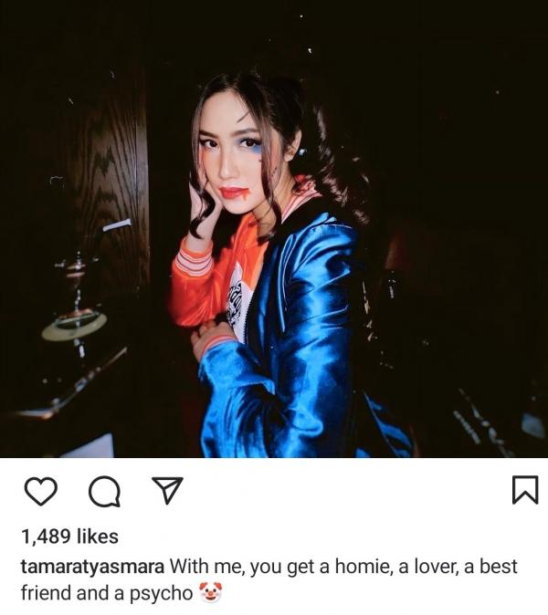 "Bersamaku, kamu mendapatkan seorang teman, kekasih, sahabat dan psikopat," tulisnya di Instagram pribadi @tamaratyasmara dikutip pada Minggu (11/2/2024).