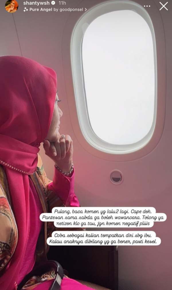 "Waaah luar biasa komenan netizen. Insya Allah jadi pahala buat Sabda. Masih aja kisah lama diungkit. Padahal udah beres dan jelas. Mungkin kurang update ya???" tulis Shanty dalam unggahan Instagram Story di akun pribadinya @shantywsh, Selasa (29/10/2024).