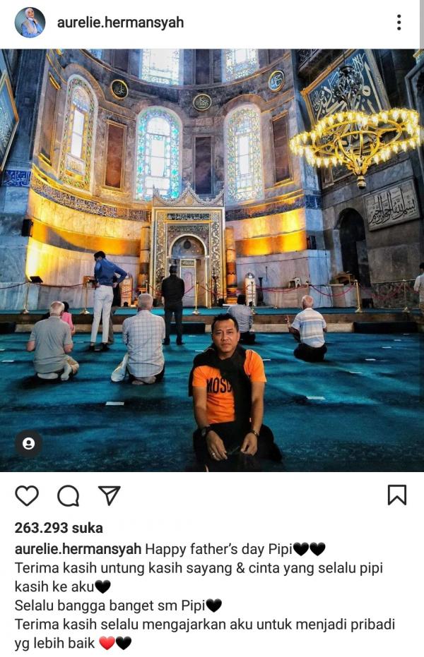 Pesan tersebut dituliskan Aurel di media sosial Instagramnya. Dia mengunggah foto sang ayah yang saat itu sedang berada di Hagia Sophia, Istanbul, Turki.