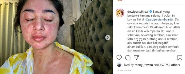 Dewi Perssik mengaku positif Covid-19 dan sekarang sudah sembuh. (Foto: Instagram)