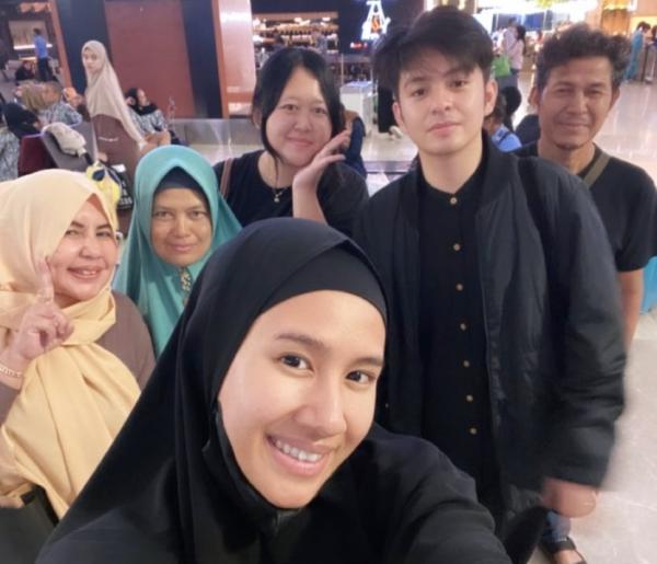 Salah satunya pasangan suami istri Angga Yunanda dan Shenina Cinnamon yang baru saja berangkat umroh.