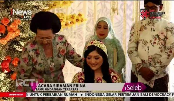 Di momen berikutnya, terlihat Ratu Hemas ikut menyiram Erina. Dia mengguyur air ke badan Erina. Lagi, senyum Erina pun tak pernah lepas dari pandangan.