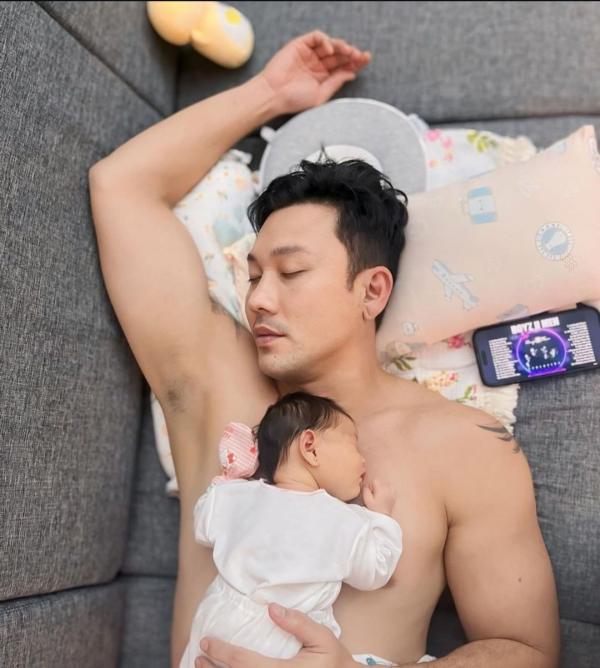Terbaru, Densu membagikan momen tidur bareng bersama anak pertama. Anaknya terletak diletakkan di atas dada Densu. Momen ini pun banjir doa dari warganet dan rekan sesama artis.