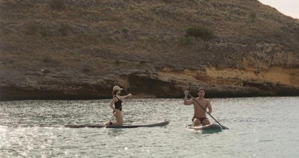 Keduanya tampil serasi mengenakan pakaian renang berwarna hitam saat bermain di tepi pantai. Mereka terlihat mendayung paddle board sambil menikmati air laut Labuan Bajo yang jernih.