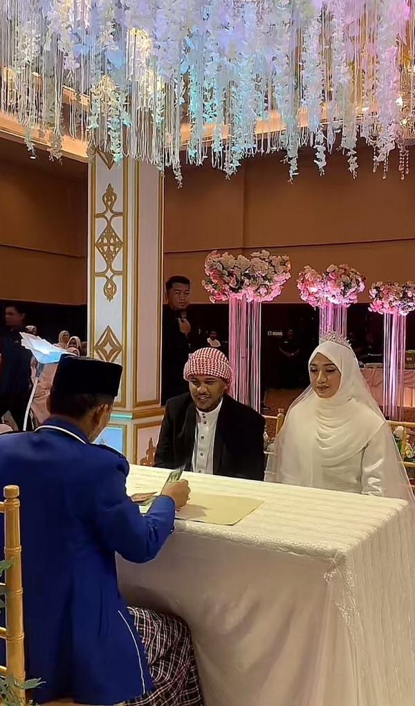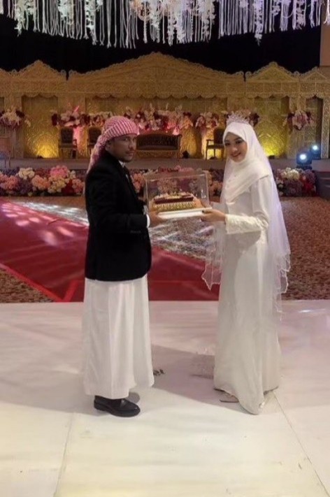 Mamat dan Nafha juga mengabadikan momen mereka dengan mas kawin pernikahannya. Mamat begitu gagah dengan balutan gamis putih dan jas hitam yang dipadukan dengan sorban. Mamat dan Nafha terlihat tersenyum sembari memegang mas kawin pernikahan mereka.