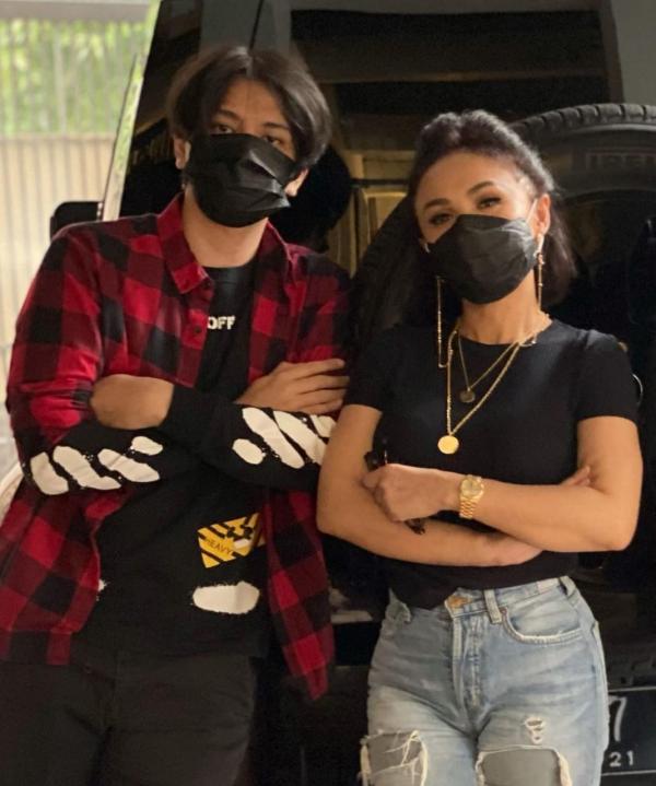 Di foto tersebut, Yuni Shara tampak mengenakan kaus hitam dan ripped jeans. Kemudian di foto berikutnya, dia tampak diapit kedua putranya.
