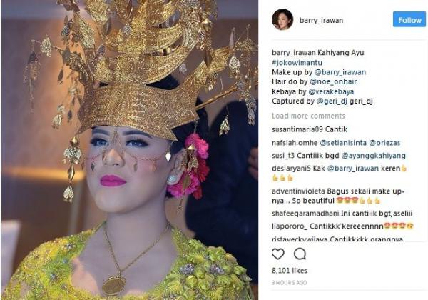 Diketahui, busana Kahiyang Ayu merupakan rancangan dari Vera Anggraini. Padu padan busana adat Tapanuli Selatan tersebut, kemudian disempurnakan dengan riasan glamor dan lipstik merah muda menyala oleh make-up artist basis Jakarta, Barry Irawan. Sementara untuk tata rambut Kahiyang yang disanggul dan dilengkapi kembang, serta bulang emas itu ditata oleh Noe.